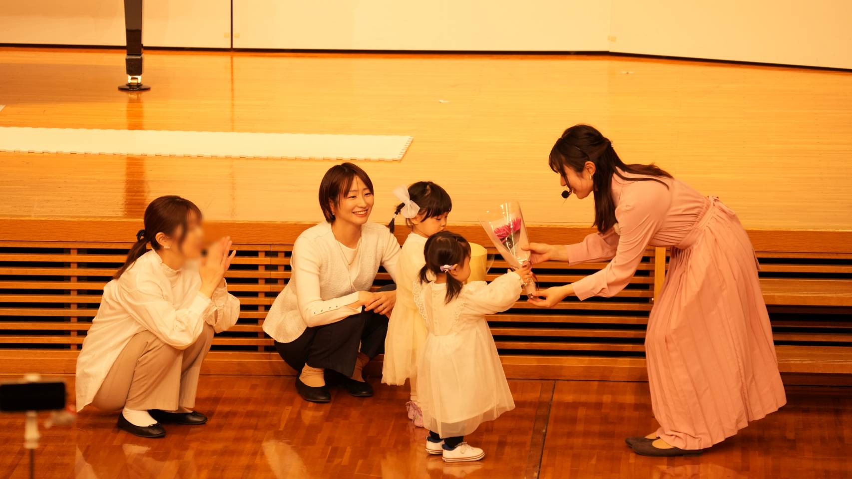「初めての環境なのでずっと抱っこになるのではと思っていましたが、自分で壇上に上がり、お返事ができたことに驚きました。」