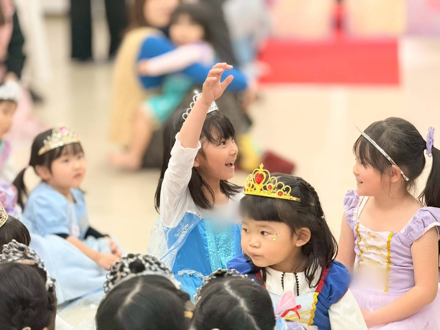 ・上の子がプリンセスにハマっているのと、習い事の参考にするため参加しました。初めは怖がって(どの場面でもそうですが、初めての物や場所が苦手なようです)、どうなることかと思いましたが、だんだん楽しめるようになったみたいで、最後には輪の中でステッキを高く掲げていました。ありがとうございました。(3歳、2歳女の子のママ)