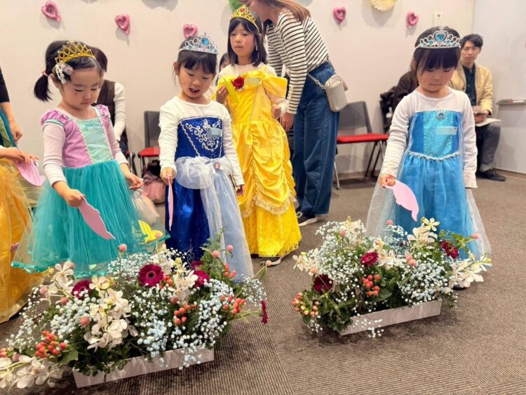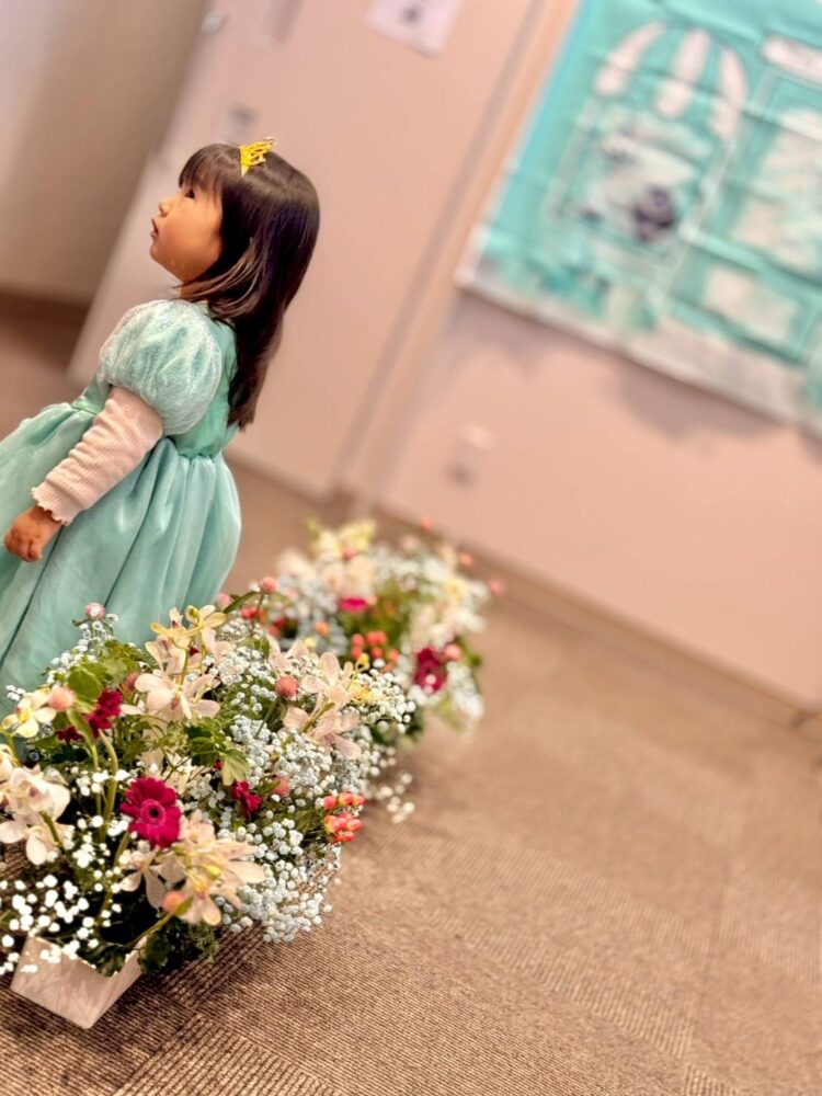 小さな手で、そっとお花を選び、花器にさしていくプリンセスたち。
